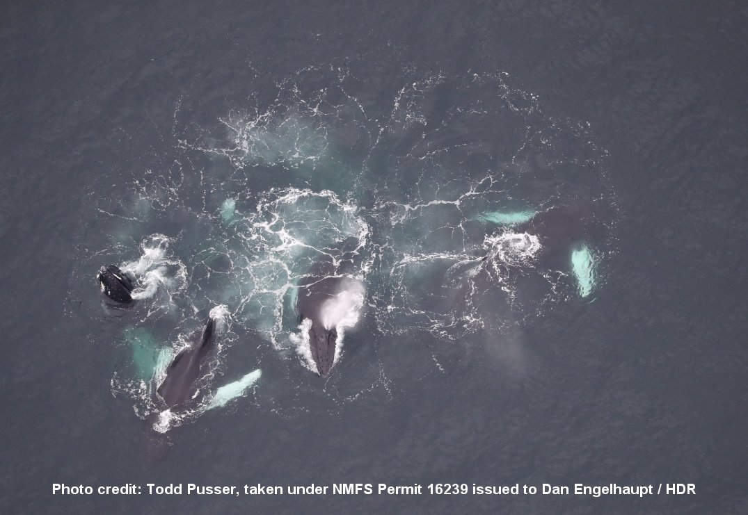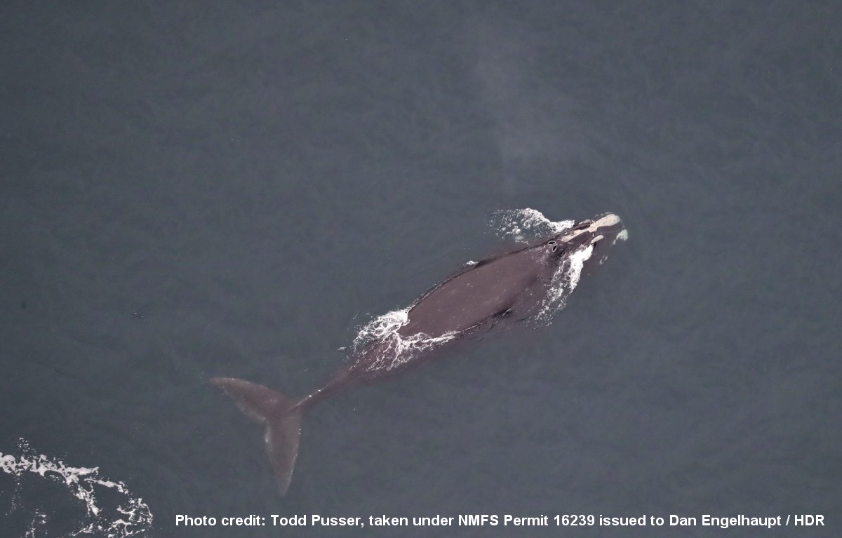 The team’s very first sighting on 9 April included five critically endangered North Atlantic right whales at the northern end of the study area, approximately 70 miles northeast of Virginia Beach. Right whale mortalities were alarmingly high in 2017, no new calves were reported this winter, and overall detections of right whales were low throughout the winter calving season. The sighting was immediately reported through NOAA's North