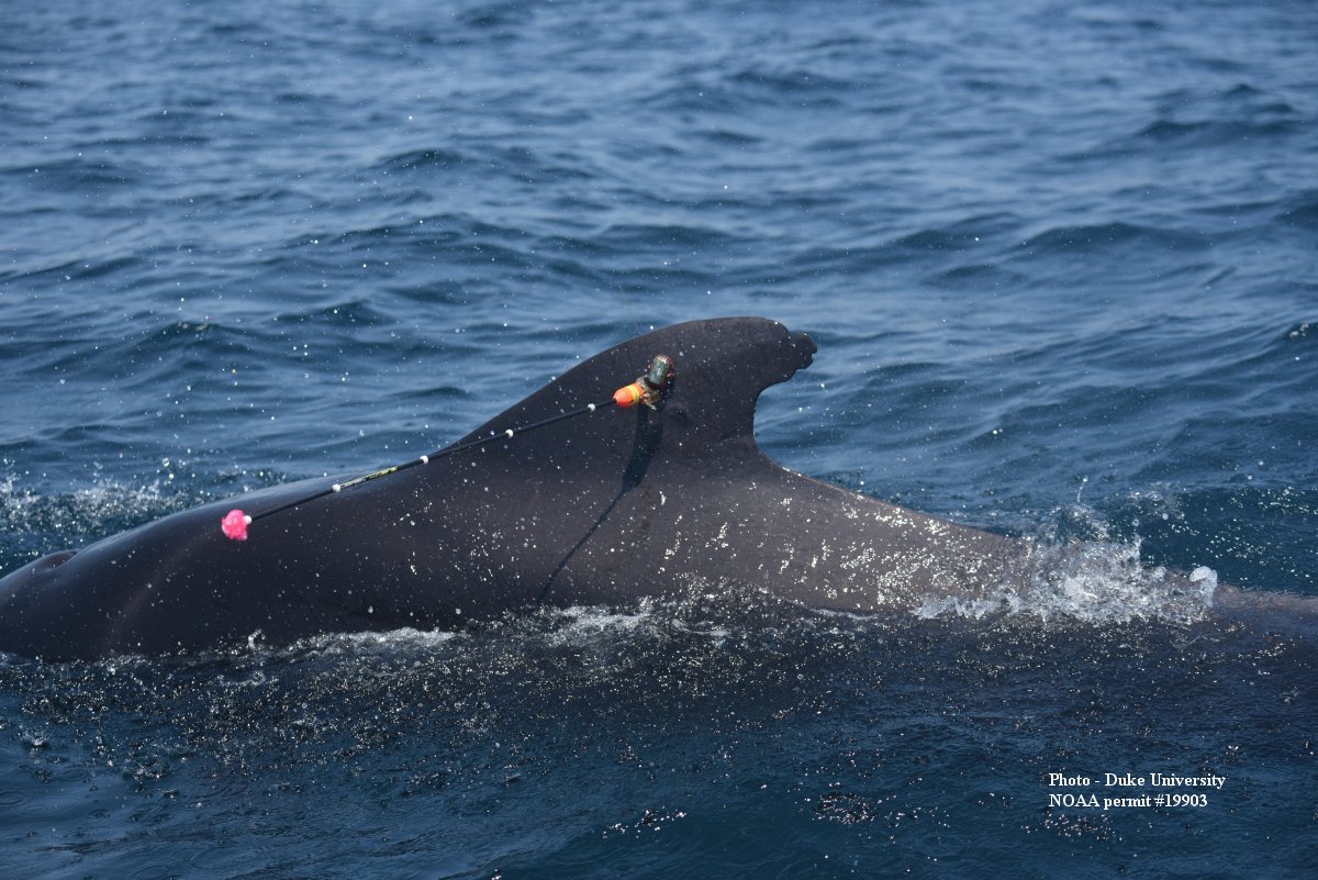 Tag on a short-finned pilot whale (Globicephala macrorhynchus)