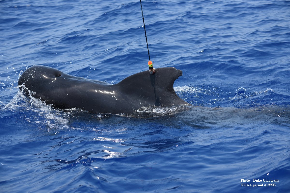 The crew was rewarded for the long offshore trips, with sightings of short-finned pilot whales, a species only seen twice during vessel surveys since the project began in JAX in 2009, and successfully deployed four tags on them. It will be fascinating to see where these animals travel. Interestingly, none of the 40 short-finned pilot whales tagged off Cape Hatteras have traveled further south than Onslow Bay, NC. Additionally, last year, several photo-identification matches were made between pilot whales at this JAX site and a catalog maintained by the Bahamas Marine Mammal Research Organization, run by Diane Claridge, so it’s possible these animals are part of a completely separate population than the NC animals. Stay tuned to see if these tagged animals head to the islands!