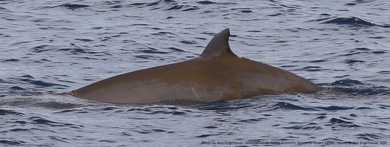 On 19 August 2022 during an offshore vessel survey conducted under the U.S. Navy’s Marine Species Monitoring Program, researchers from HDR encountered a pair of Cuvier’s beaked whales (Ziphius cavirostris) 72 NM off Virginia Beach, Virginia. Photographs were collected of the male / female pair and the research team stayed with the group through three surfacing bouts.