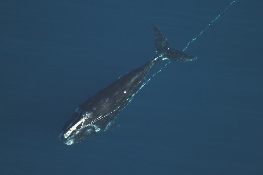 This event represents an impressive team effort between multiple groups working on right whale research and conservation. Interestingly, the first sighting of the entangled whale occurred beyond the eastern-most end of the Early Warning System (EWS) survey area and might not have been detected on that day if it weren't for the monitoring research being conducted from the vessel. Responders were not able to remove all the rope due to the whale's evasive behavior, and because the rope was likely entangled through the whale's baleen. Responders hope that the whale will be able to shed the remaining rope on its own, but only time will tell. The occurrence of right whales in this area is of interest and concern to all parties, and hopefully #4057 will soon be seen gear free.