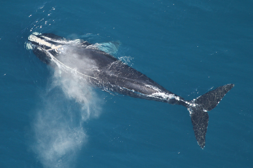 On February 17th the whale was relocated with the telemetry buoy approximately 60 miles north of its last know location the previous day. The FWC aerial survey team located the animal and researchers from FWC and Georgia Department of natural Resources were able to make an attempt at disentanglement. Most of the line was successfully removed and it is hoped that the whale will be able to shed the rest of the gear itself.