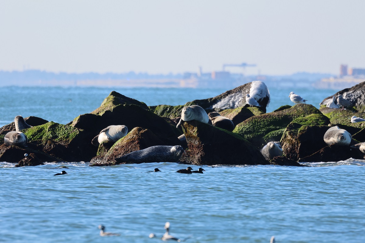 Harbor Seals at the Chesapeake Bay Bridge Tunnel in January of 2024. NMFS General Permit # 19826.